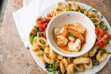 Rock shrimp, scallops, calamari, clams, mussels, fish and tomato sauce.